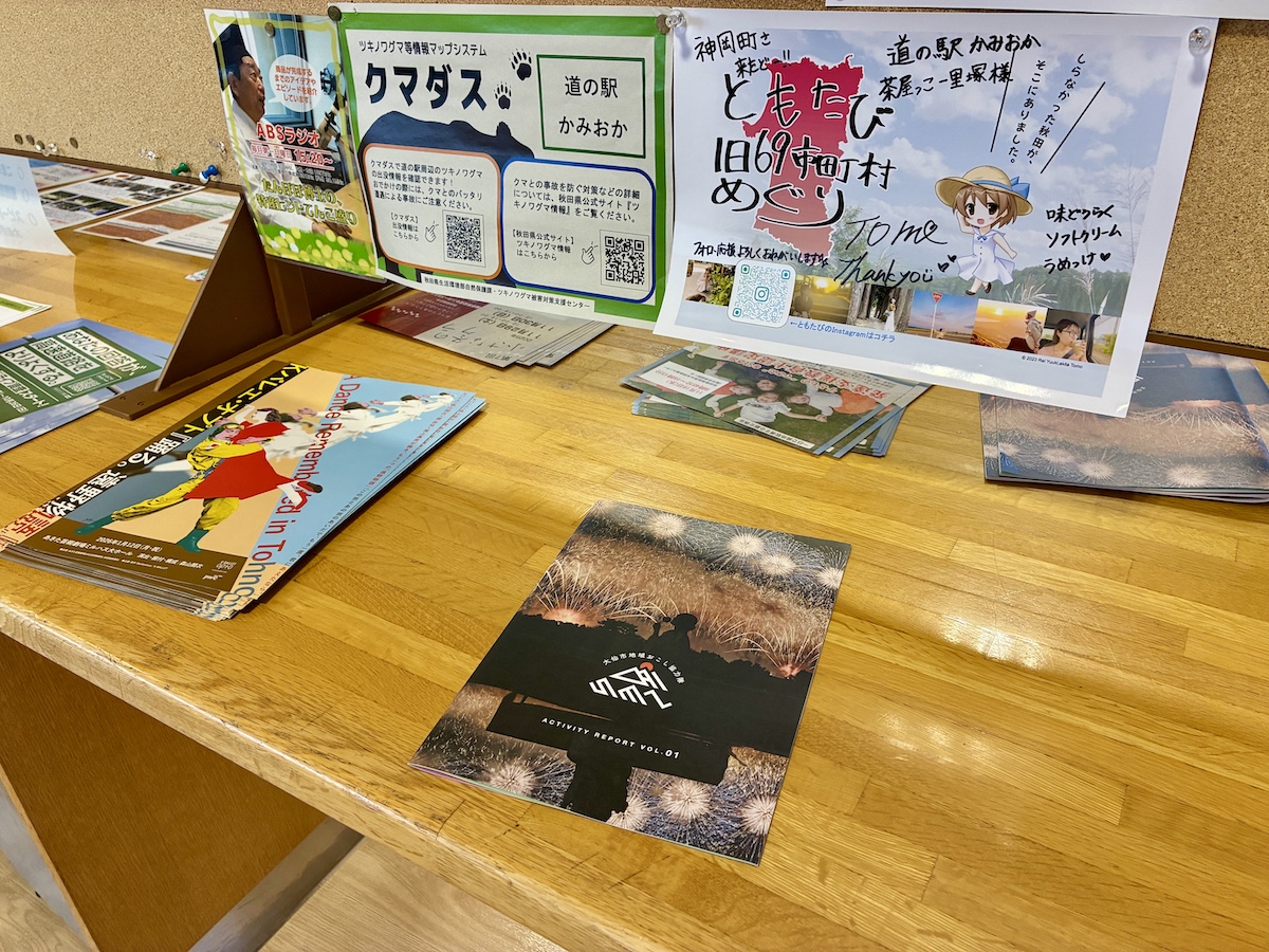 道の駅かみおかに設置されている大仙市地域おこし協力隊のフリーペーパー