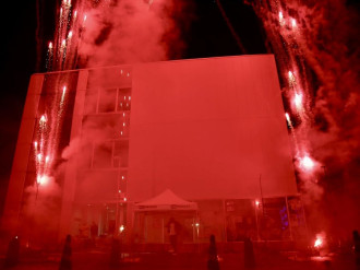 大曲ヒカリオ広場(大仙市大曲通町)で12月31日深夜、年越しイベント「ニューイヤー花火2026」が開かれる。