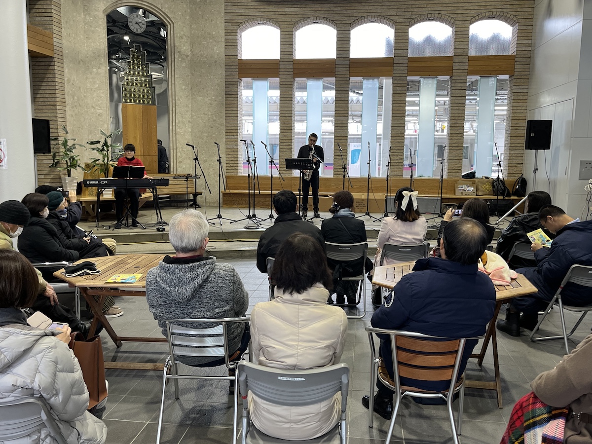 大曲駅1階の「ふれあい広場」でのコンサート(2023年11月25日に開催された1回目開催の様子)
