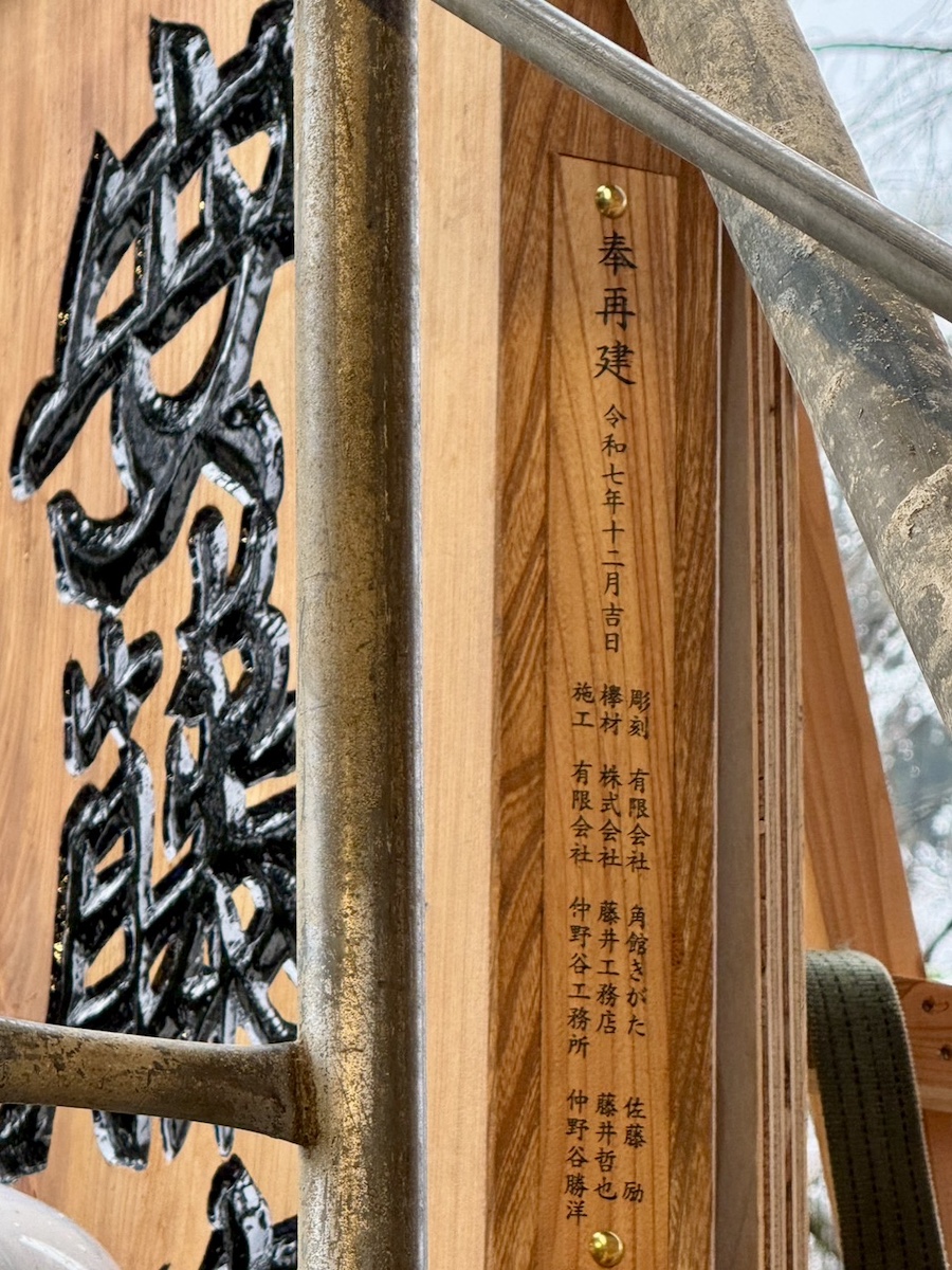 景観看板の横側には製作に関わった職人たちの名前が記された