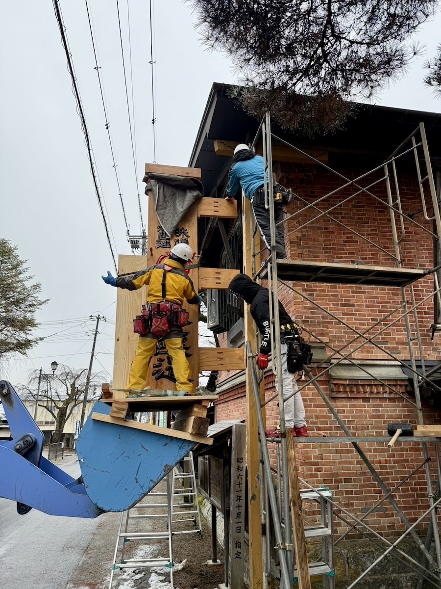 1853年創業で170年以上の歴史を持つ安藤醸造(仙北市角館町下新町)の景観看板が12月10日、約40年ぶりに新しくなった。