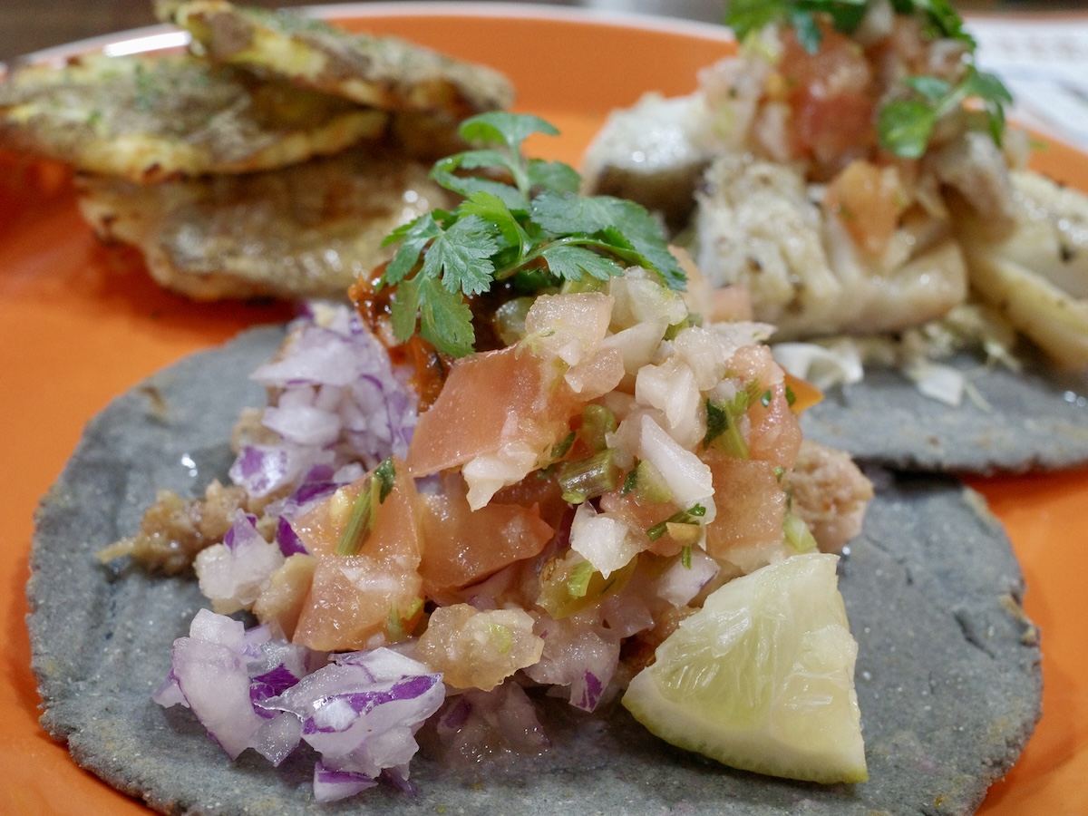 「カルニタス(豚肉のオイル煮 ピコデガヨ)」(600円)