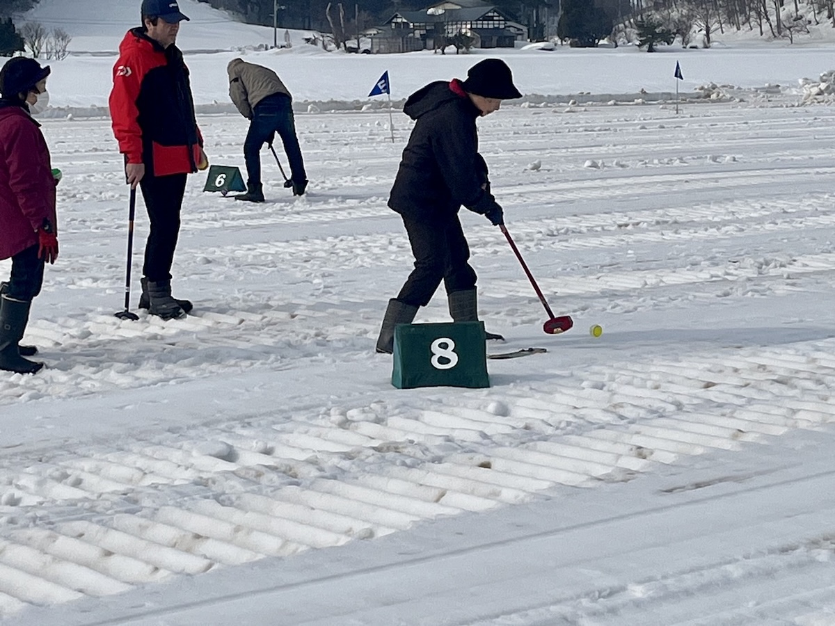 「払田柵の冬まつり」でグラウンドゴルフを楽しむ来場者