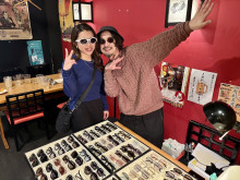由利本荘市で「メガネの和光石脇店」を経営し、自身のブランドも販売する池田さん(右)